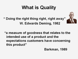quality. Perhaps the best definition has been given by W. Edwards Deming,