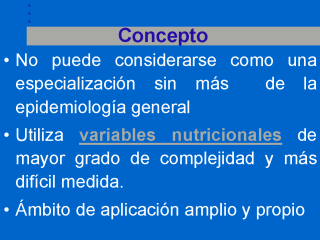 | La epidemiología ha contribuido grandemente al estudio de los factores determinantes y a la distribución de las frecuencias de las enfermedades, además ha sido y es un instrumento de aplicación al campo de la salud pública -sobre todo a la hora de evaluar y planificar programas de salud-; se ha empleado en la toma de decisiones, así como en la evaluación y control de la calidad de la asistencia sanitaria. Por otra parte, la epidemiología nutricional se diferencia de la epidemiología en general por el manejo de variables de tipo nutricional, de mayor complejidad y dificultad de medida, siendo esta nueva disciplina la que ha abordado no sólo aspectos relacionados con el conocimiento de las enfermedades carenciales, sino también aspectos sociales de la nutrición, las relaciones entre consumo y tipo de dieta, el papel de los factores socioeconómicos,