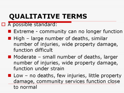 One approach to rating qualitatively is to establish general ranges of