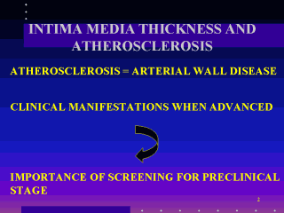 | Atherosclerosis is a disease of the arterial wall of which the particularity is to give clinical symptoms only when advanced. To have any impact on this disease, it is necessary to detect and treat preclinical presentation. Therefore screening for preclinical disease assures great importance. |