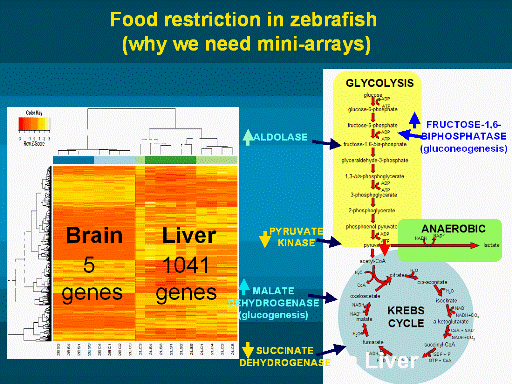Blue = increased expression in response to food restriction,