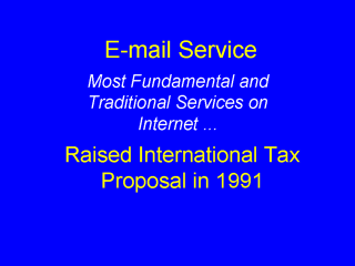 | The Internet e-mail is most fundamental and cost saving service. In 1999 the UNDP report mentioned as an option for consideration the possibility of a "bit tax" -- essentially a tax on the Internet e-mail, to raise funds for spreading technology to developing nations. However UNDP had made clear that the organization did not endorse any form of international tax. |
