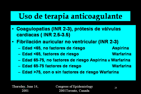tres veces riesgo de embolia, con INR 2.0 SPAF