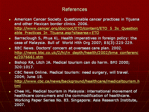 Bishop RA, Litch JA. Medical tourism can do harm. BMJ