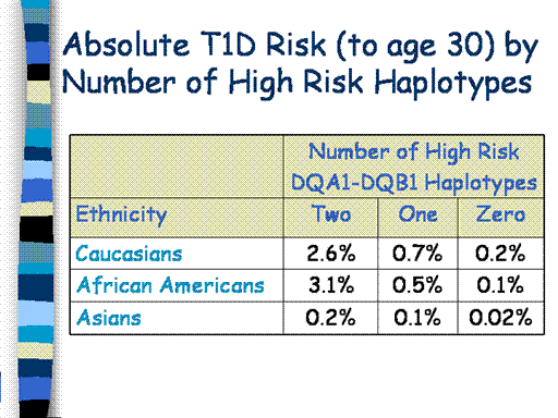 illustrates the absolute risk (or actual likelihood) of developing T1D