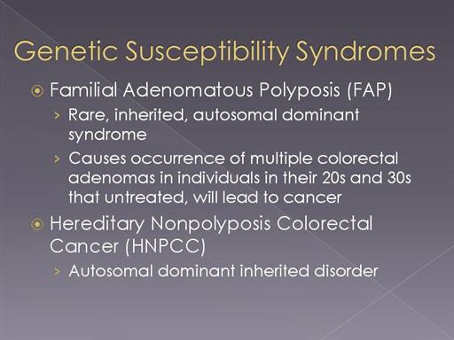 HNPCC accounts for about 3 to 4% of all colorectal cancers.  Lifetime risk of colorectal cancer with this condition may be as high as 70-80%