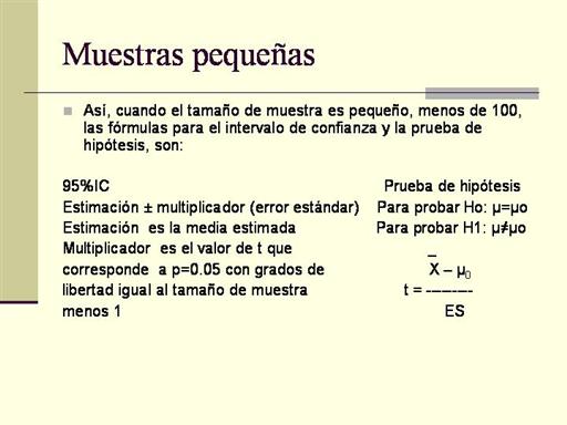 Las fórmulas son las mismas pero el valor de p tiene que ser leído de las tablas de la distribución t