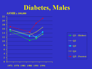 diabetes mortality decreased from 1971 to 1986, and then increased from 1986 to 1996,