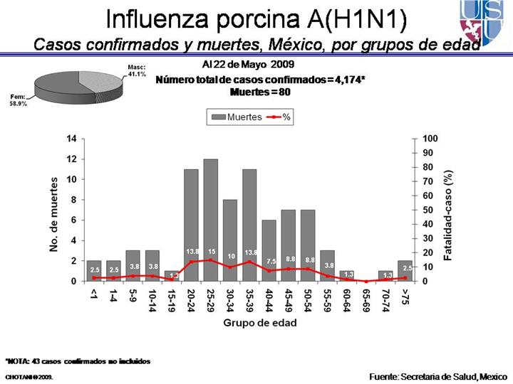 El porcentaje más alto de fatalidad-caso (77.5%) fue observada en el grupo de edad de 20-54 años. |