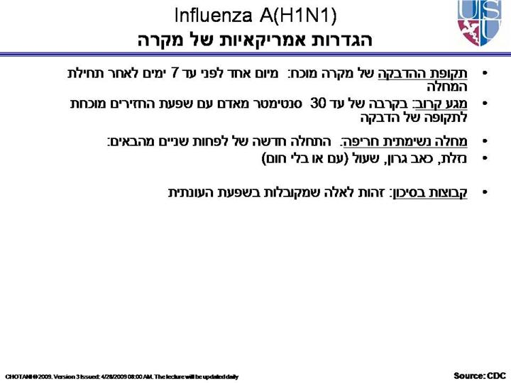 Persons who continue to be ill longer than 7 days after illness onset should be considered potentially contagious until symptoms have resolved. Children, especially younger children, might potentially be contagious for longer periods. The duration of infectiousness might vary by swine influenza A (H1N1) virus strain