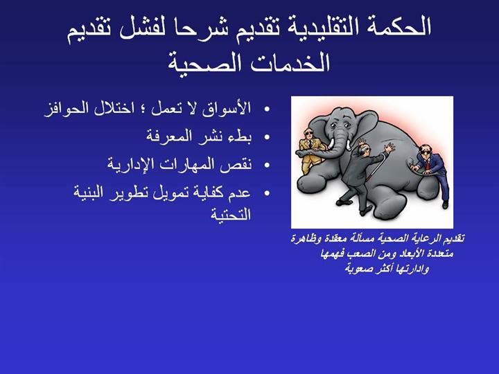 تقديم الرعاية الصحية مسألة معقدة وظاهرة متعددة الأبعاد ومن الصعب فهمها وادارتها أكثر صعوبة