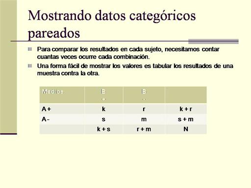 • El número de veces que ambos medios son positivos = k • El número de veces que A es positivo y B es negativo = r • El número de veces que A es negativo y B es positivo = s • El número de veces que ambos medios fueron negativos = m |