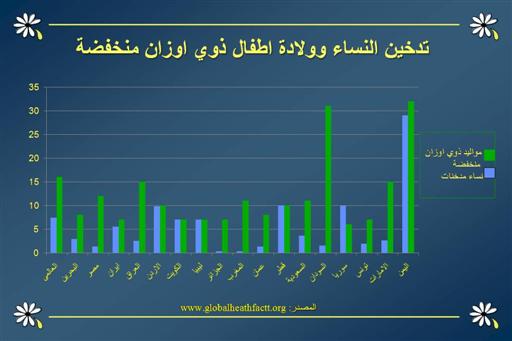 كما هو ملاحظ من الشكل هنالك زيادة في التدخين بين النساء وزيادة ولادة مواليد بوزن اقل بكثير عن الحد الطبيعي
