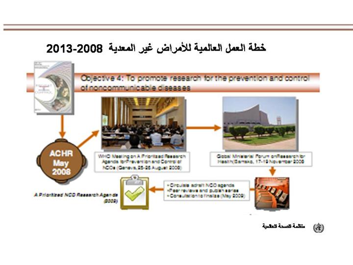 تهدف هذة الخطة للارتقاء بالبحث العلمي للوقاية من الأمراض غير المعدية و السيطرة عليها |