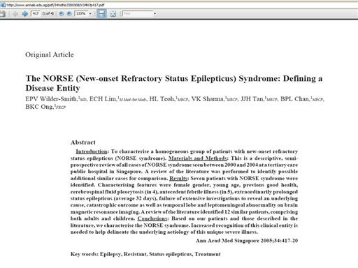 Female (6 Chinese, 1 Malay) Young age (20-52, mean 33) Previous good health Very long-lasting status epilepticus Extensive Negative workup