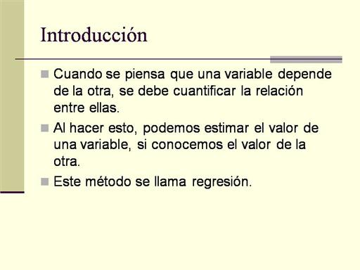 En la parte 15 de curso, vimos correlación, que nos muestra la asociación entre dos variables cuantitativas. Correlación cuantifica la fuerza de asociación entre dos variables cuantitativas. Regresión estudia la relación entre dos variables cuando una depende de la otra. |