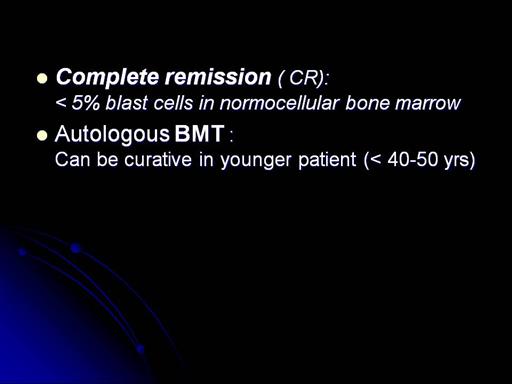 remission or <5% blasts in the bone marrow. Induction therapy generally