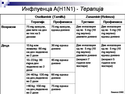 Бремени жени Oseltamivir и zanamivir спаѓаат во групата „С“ за бремени жени, што значи дека не се спроведени испитувања за проценка на нивната безбедност врз бременоста. Со оглед на непознавањето на ефектите на овие препарати врз бремените жени и нивниот фетус, тие може да се употребуваат во текот на бременоста само доколку потенцијалната корист од нивната употреба го оправдува потенцијалниот ризик за ембрионот и фетусот. Меѓутоа нема објавено податоци за споредни ефекти кај жените што ги коростеле овие препарати во текот на бременоста, ниту кај децата родени од мајки што ги примале овие препарати. Бременоста не би требало да се зема како контраиндикација за користење на oseltamivir or zanamivir. Поради системскта активност oseltamivir е префериран лек кај бремените жени. Zanamivir може да биде префериран поради ограничената системска абсорпција; меѓутоа респираторни компликации може да бидат здружени zanamivir особено при инхалационен начин на администрирање на лекот, особено кај жени со зголемен ризик за појава на респираторни проблеми. Споредни ефекти: http://www.cdc.gov/flu/professionals/antivirals/side-effects.htm |