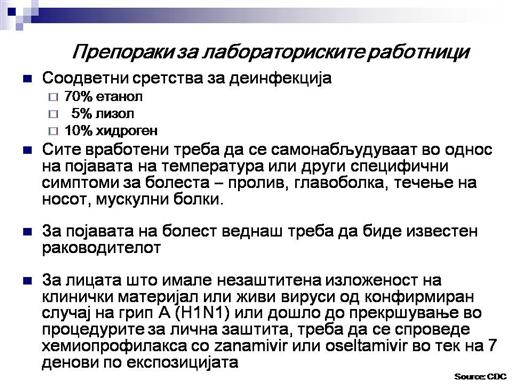 За дополнителни информации видете: Biosafety in Microbiological and Biomedical Laboratories (BMBL) 5th Edition Section IV Laboratory Biosafety Level Criteria ( http://www.cdc.gov/OD/ohs/biosfty/bmbl5/bmbl5toc.htm )
