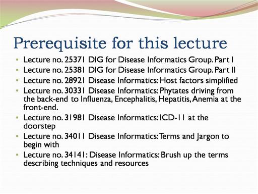 Lecture no. 28921 Disease Informatics: Host factors simplified