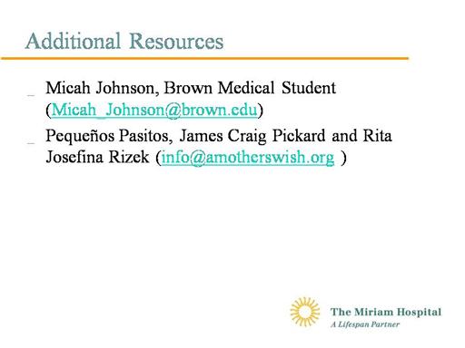 Micah Johnson, Brown Medical Student (Micah_Johnson@brown.edu) Pequeños Pasitos, James Craig Pickard and Rita Josefina Rizek (info@amotherswish.org) |
