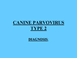 | For virus use HA or a commercial ELISA, using the supernatant from clarified faeces. CPV-2 will HA porcine erythrocytes (as does the feline parvovirus). Antibody can be detected by HAI or ELISA. Grows in both canine and feline cell lines in the laboratory. |