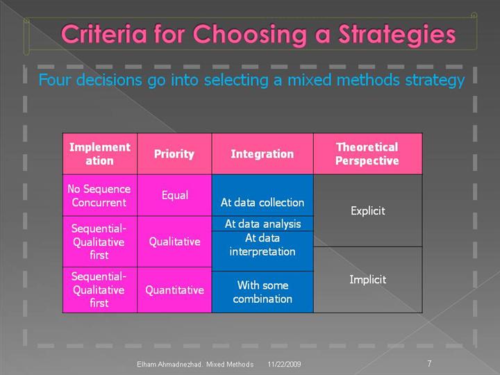-Implementation means either that the researchers collect both the quantitative and qualitative data in phases (sequentially) or that they gather it at the same time (concurrently). When the data are collected in phases, either the quantitative or quantitative data can come first.