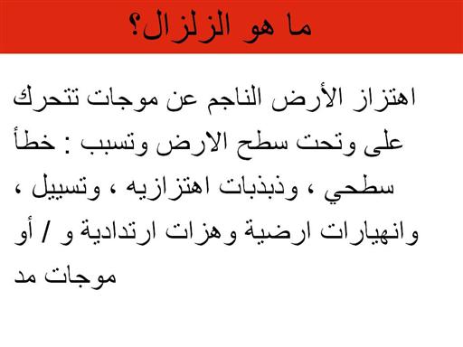 الزلزال هو مصطلح يستخدم لوصف كل من الانزلاق المفاجئ على خطأ ، والموءدي لاهتزاز الارض وطاقة زلزاليه مشعة ناجمة عن هذا الانزلاق، أو عن طريق النشاط البركاني أو المواد المنصهرة ، أو غيرها من تغييرات الضغط المفاجئة في الأرض