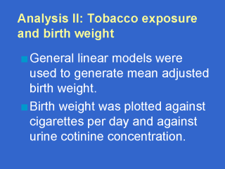 day and against urine cotinine concentration in order to learn more about how birth weight