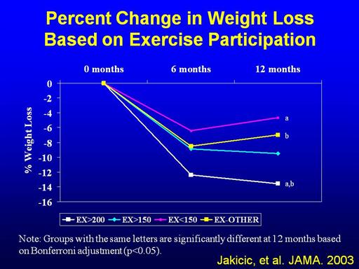 We also examined changes in weight loss, and all groups decreased significantly during this 24 week period. There was no difference between the groups for weight loss. The average weight loss was approximately 8 kg. |
