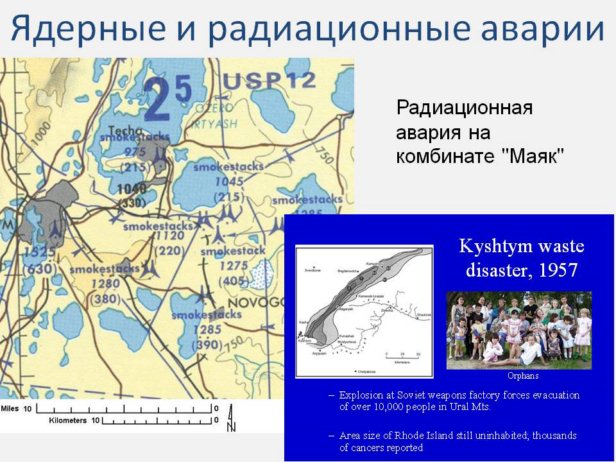 http://www.esosedi.ru/onmap/zavod_mayak/8566136/#lat=55692778&lng=60799628&z=13&v=2&mt=0 Радиационная авария может быть разных видов. Например ядерной аварии может быть такая, в которой поврежден реактор reactor core как в результате Чернобыльской катастрофы Chernobyl Disaster в 1986, в то время как пример радиационной аварии radiation может быть из-за какого-то события, такого как рентгенографическая авария radiography когда работник уронил источник в реку.