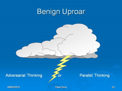 Parallel thinking is These are useful views and ideas, we can both face in the same direction and lay facts down side by side. The words are possibly, perhaps I do not know