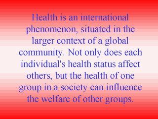 | The diffusion of medical technology and health systems research can affect positively a nation's health much like, in a negative direction, the spread of infectious diseases can affect communities. International diffusion of health systems reform was institutionalized by the philosophical investment in health care as a universal human fight rather than a sellable commodity. |