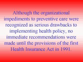 | Health was viewed rhetorically as a social right at a basic if minimal level, but untested as the expected outcome of specific policies during Perestroika. The notion that the organization of medical care, financing mechanisms, and health policy had been threatening population health began to be generally accepted only after Perestroika, when the health reform debate finally culminated in the insurance legislation of the Russian Federation. |