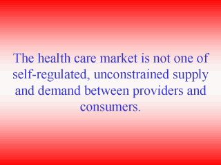 | There are costs to placing industry decision-making predominantly in the hands of the sellers or suppliers of goods and services. There are costs to constraining market relations by employers making health care decisions for consumers or the buyers. There are also unintended consequences of the HIA related to the development of uneconomical physician practice styles and increased expenditures for unnecessary services and defensive medicine, unrelated to health status outcomes. |