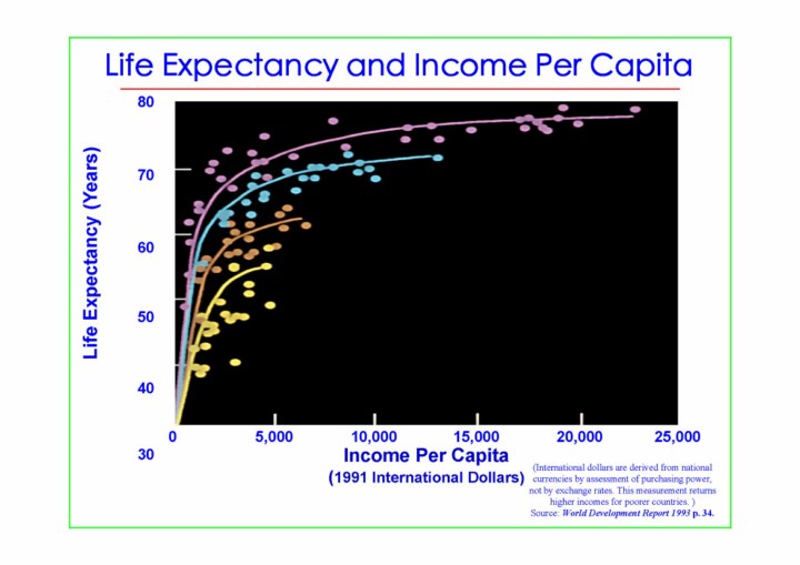 (International dollars are derived from national currencies by assessment of purchasing power, not by exchange rates. This measurement returns higher incomes for poorer countries. ) Source: World Development Report 1993 p. 34. |