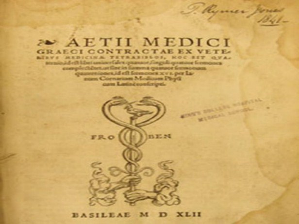 Aetius of Amida, who was the royal physician to the Byzantine Emperor Justinian I during the 6th century AD, was the chief source for the works of Rufus of Ephesus and Leonides in surgery and Soranus and Philumenus in obstetrics and gynecology. |