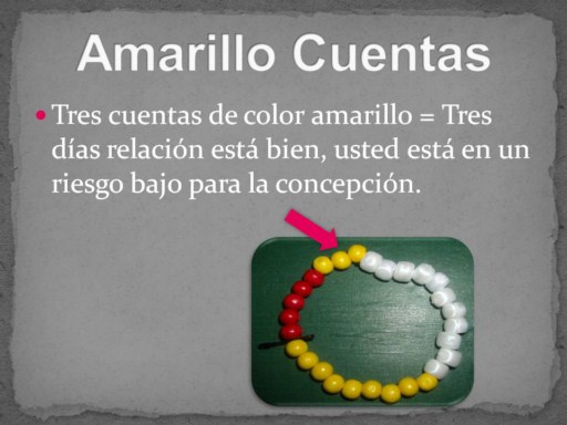 Tres cuentas de color amarillo = Tres días relación está bien, usted está en un riesgo bajo para la concepción.