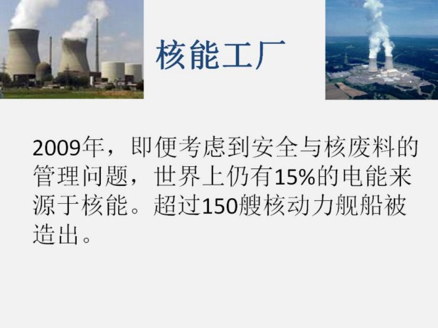核能是由受控核反应(如非爆炸性核反应)产生的能源(主要为电能)。到目前为止商业核电厂采用的是裂变反应。 电力供应反应堆加热水直至其变成蒸汽,然后蒸汽被用来发电。 如今,超过100家核电厂提供了20%的美国耗电量。超过439个核反应堆提供了约17%的世界用电量,全球有超过65个核电站正在建设中。 2009年,15%的世界用电量来自核能,尽管对核能的安全问题和放射性废物管理的担忧仍然存在。 普遍认为核聚变反应比裂变更安全,而且具有潜在的可行性,尽管技术上仍存在困难。聚变能的理论研究和实验研究已紧密进行了多年。 在中远期未来,裂变能和聚变能在航空推进上的应用前景是充满希望的,用低推动力来维持长时间以实现高速。放射性衰变的应用范围相对较小,主要为空中飞行任务和实验提供能力。全球正在加紧研究如何改善核能的安全问题,例如被动安全核电厂,核聚变的使用,过程热如氢产生的额外利用(支持氢经济),以用于海水淡化和区域供热系统。 |