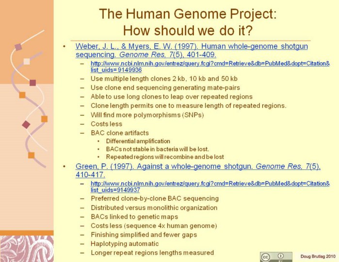 Green, P. (1997). Against a whole-genome shotgun. Genome Res, 7(5), 410-417.