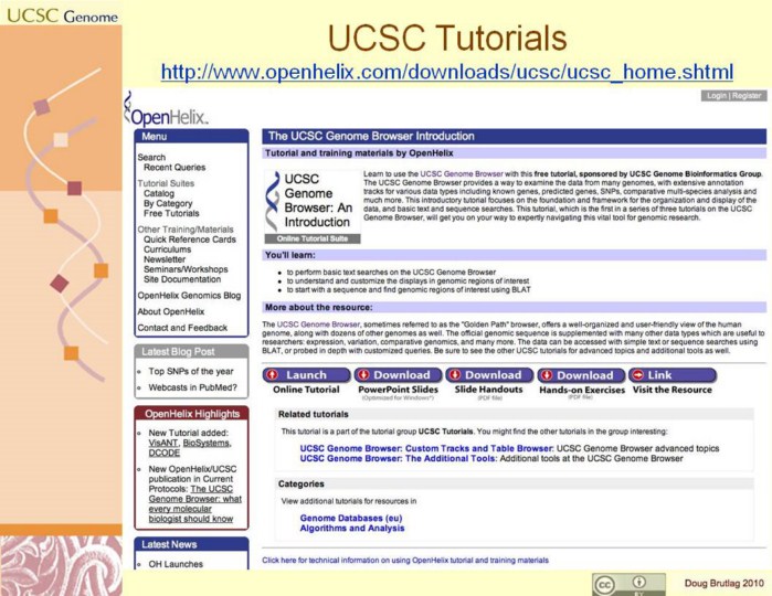URL links from the slide: http://www.openhelix.com/downloads/ucsc/ucsc_home.shtml |