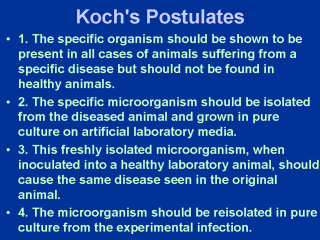 infectious agents or other, almost completely unknown processes. Koch’s Postulates are
