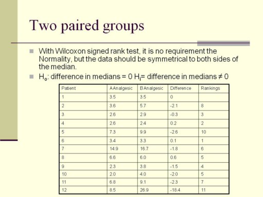 If we are using t-test, assume that the distribution of differences is Normal and note Ho: δ = 0 Hi:δ ≠ 0 δ is the mean of differences. δ = -2.41 SE = 1.48 t= -1.69 p>0.10 |