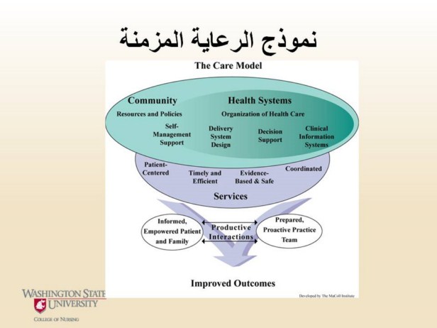 وان من احد مسؤوليات مقدم الرعاية الاعتراف بان المرضى لديهم الدور المركزي في رعايتهم,وتحفيز حس المسؤولية تجاه صحتهم.واستخدام الاستراتيجيات المعتمدة على نتاج البحث العلمي. وان من شأن الاتصال الفعال بين المرضى ومقدمي الرعاية تحسين صنع القرار المشترك, ومخرجات افضل للرعاية. (e.g., Bodenheimer et al, 2002; Bray et al., 2005; Glasgow et al., 2002).