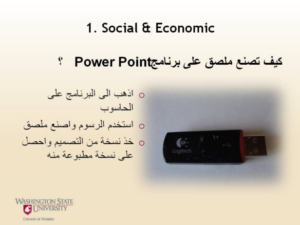 First, one economical tip to teach a class is to use PowerPoint as way to make a poster to teach a health-related class. Here this nursing student made a poster from a PowerPoint slide to teach a class. |