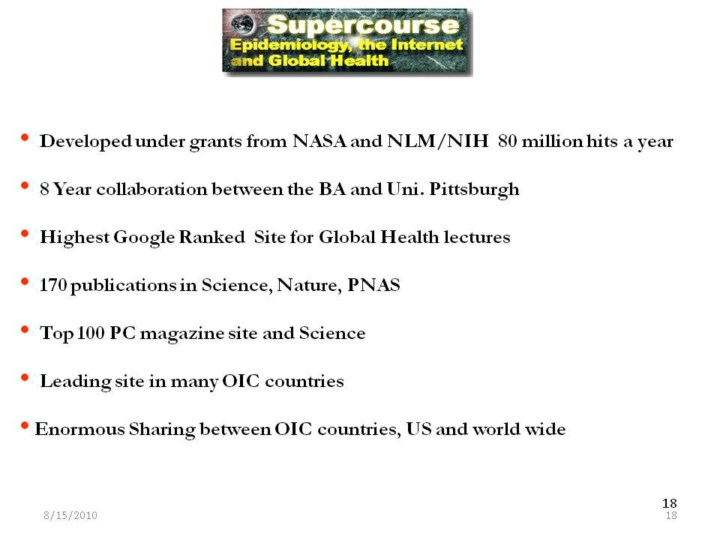 The Supercourse has provided free sharing of prevention knowledge across OIC
