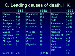 table above. This lists the top ten causes of death in Hong Kong for the years 1912, 1948,