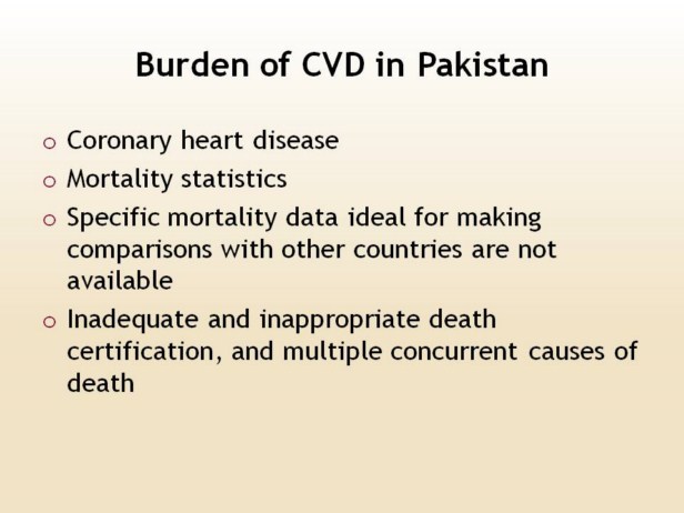 Limited data available due to scarce research. A paucity of cause-specific mortality data in the developing countries is a major impediment to the estimation of the absolute and relative death toll of CVD or in evaluating the time trends in mortality |