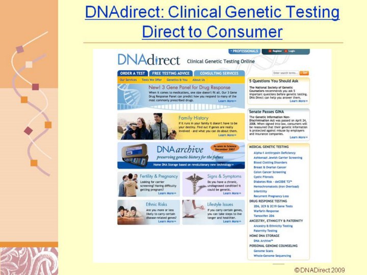 DNAdirect: Clinical Genetic Testing Direct to Consumer