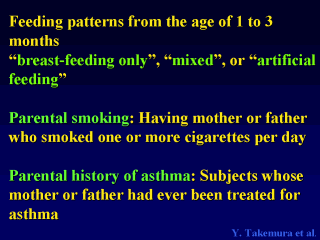 "artificial feeding". Positive parental smoking was defined as having mother or